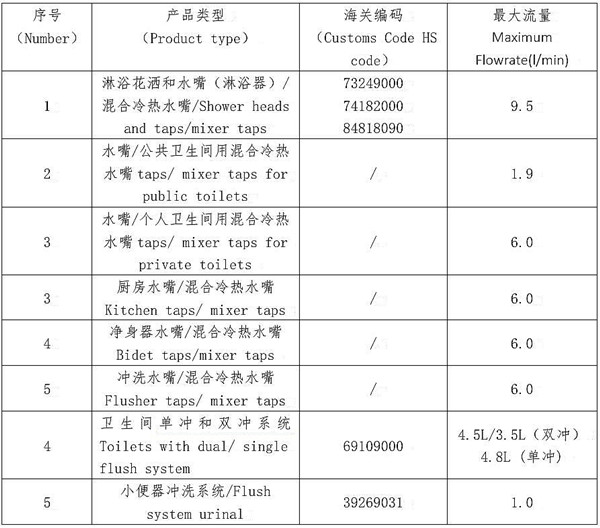 根据沙特标准化、计量和质量组织(Saudi Standards, Metrology and Quality Organization,SASO)发布的节水装置技术规程《Technical Regulation for Water Conservation Devices》要求。2018年1月1日,沙特将针对水龙头、花洒、坐便器等产品实施新的水效认证要求。新的认证要求规定水龙头、花洒、坐便器等产品在满足相应的产品标准外,还需要对产品水力效能按等级划分,同时必须在产品包装上加贴规定的水效标签。