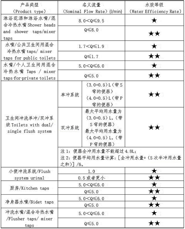 目前沙特的水效主要分为2级,即★和★★(即A和B,A级对应的是★★,B级对应的是★)。